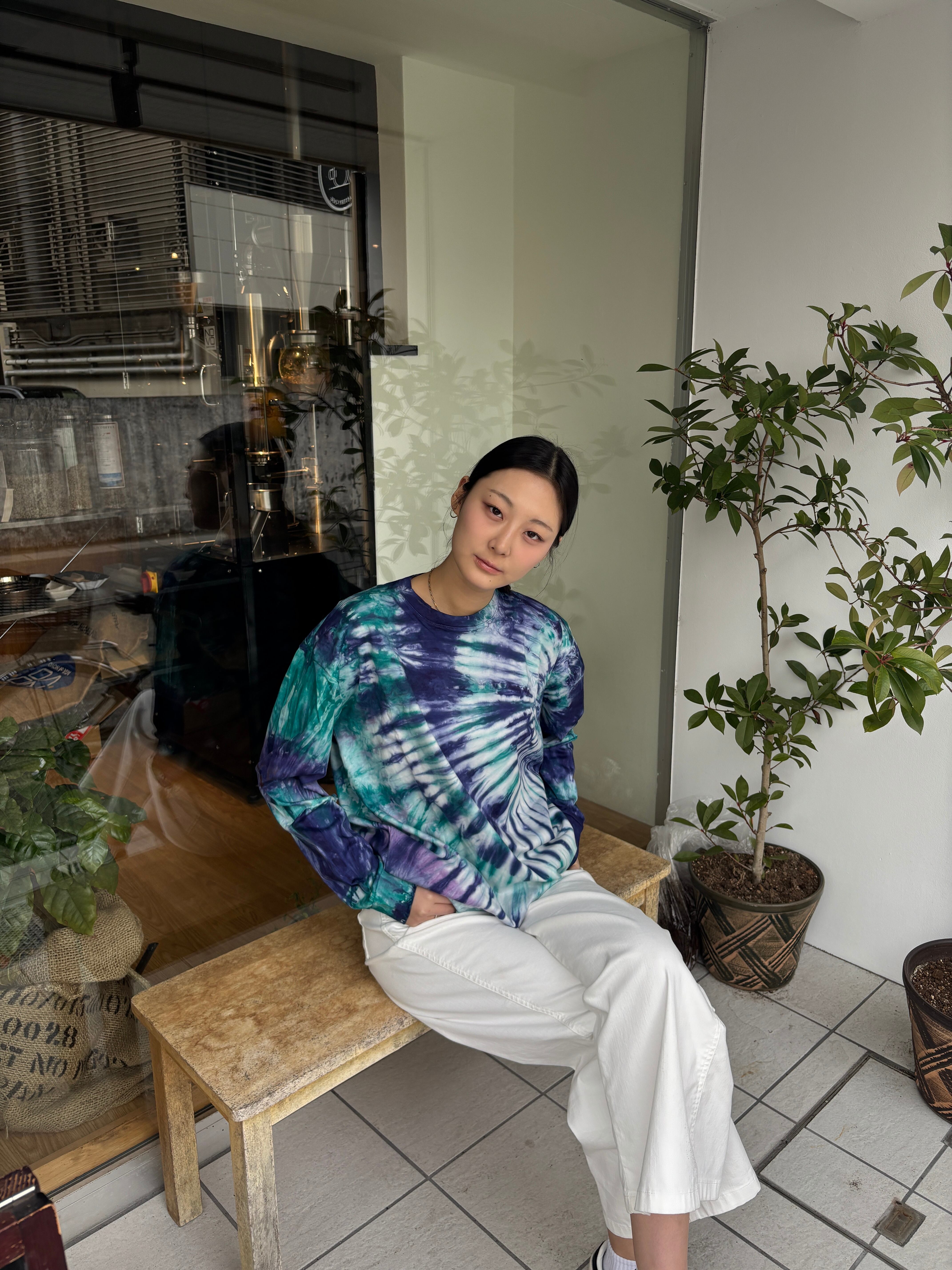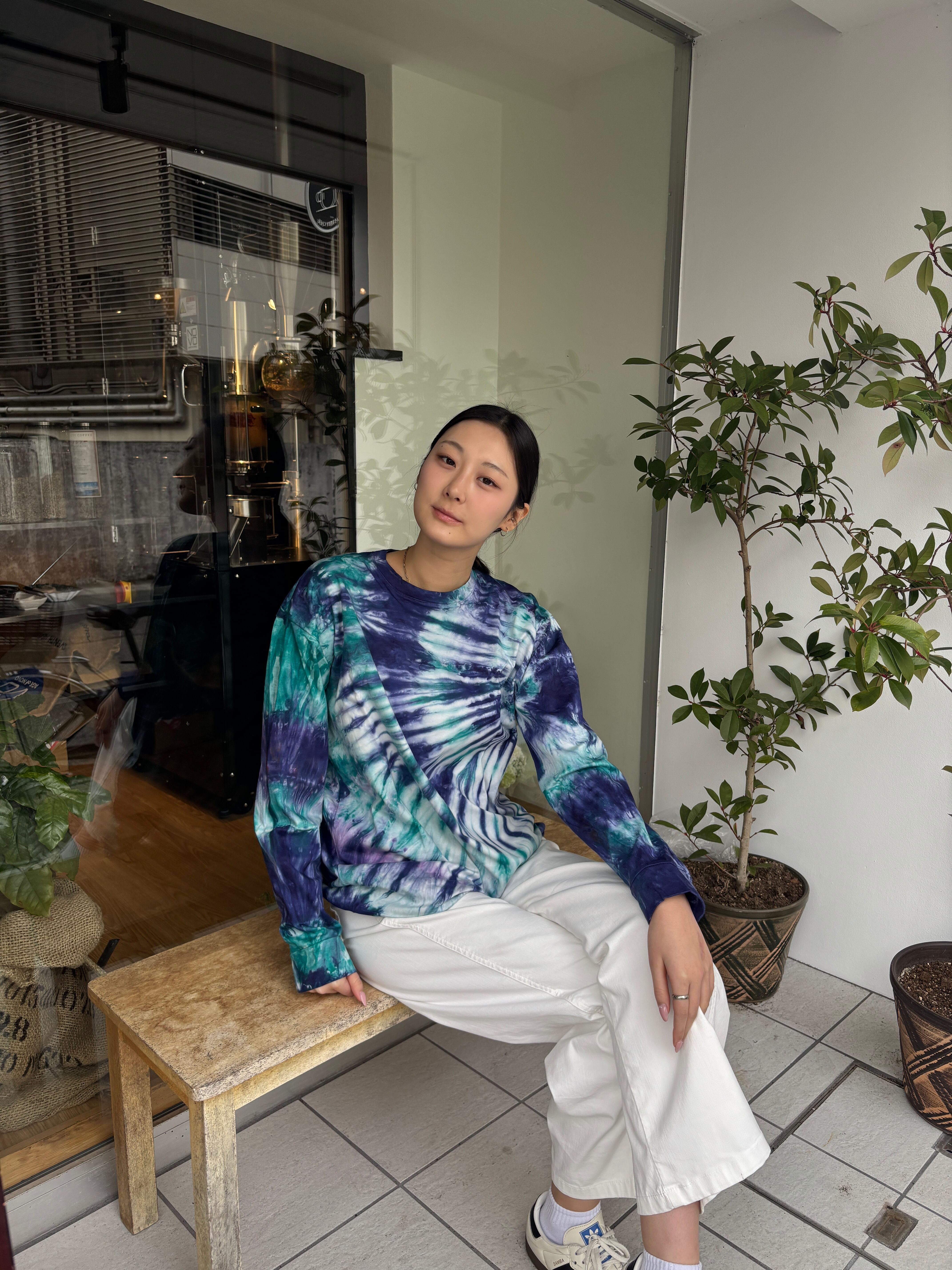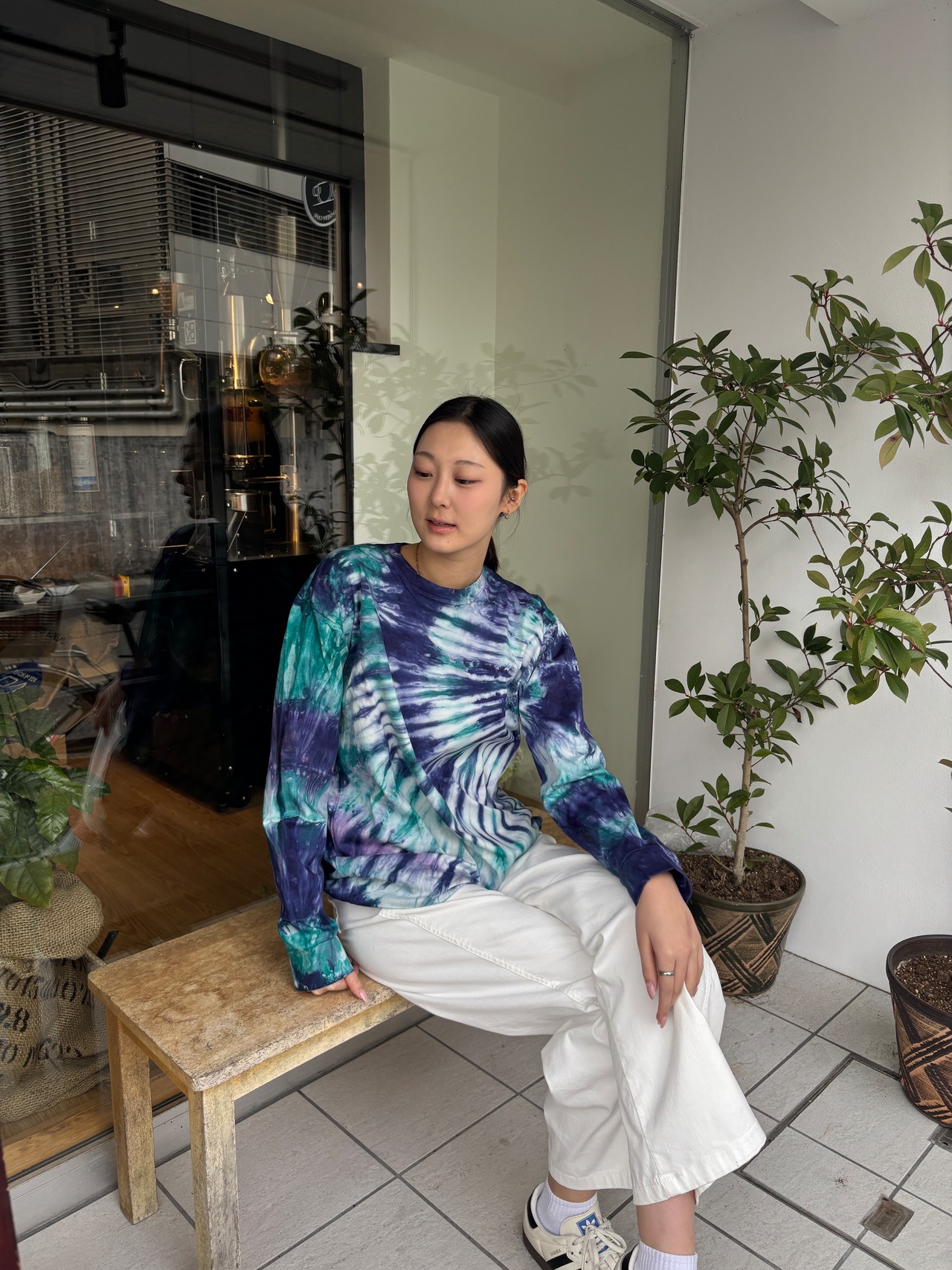 一点一点手で染め上げたNigerian Adire (ナイジェリアンタイダイ)のロングスリーブシャツです。かなりオーバイサイズですが、柔らかい生地のため風を感じるシャツです。