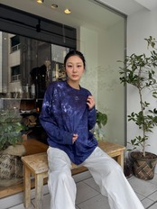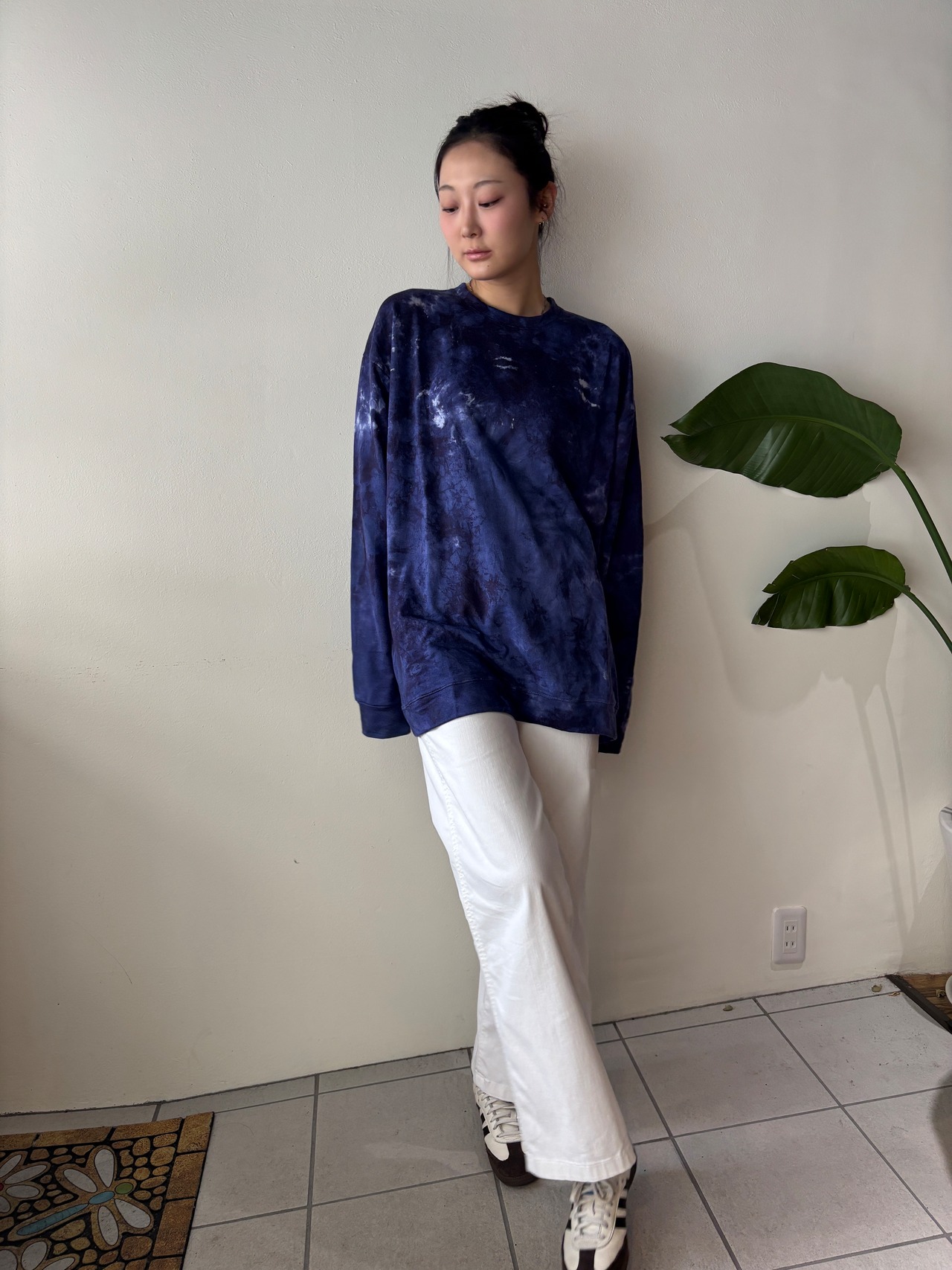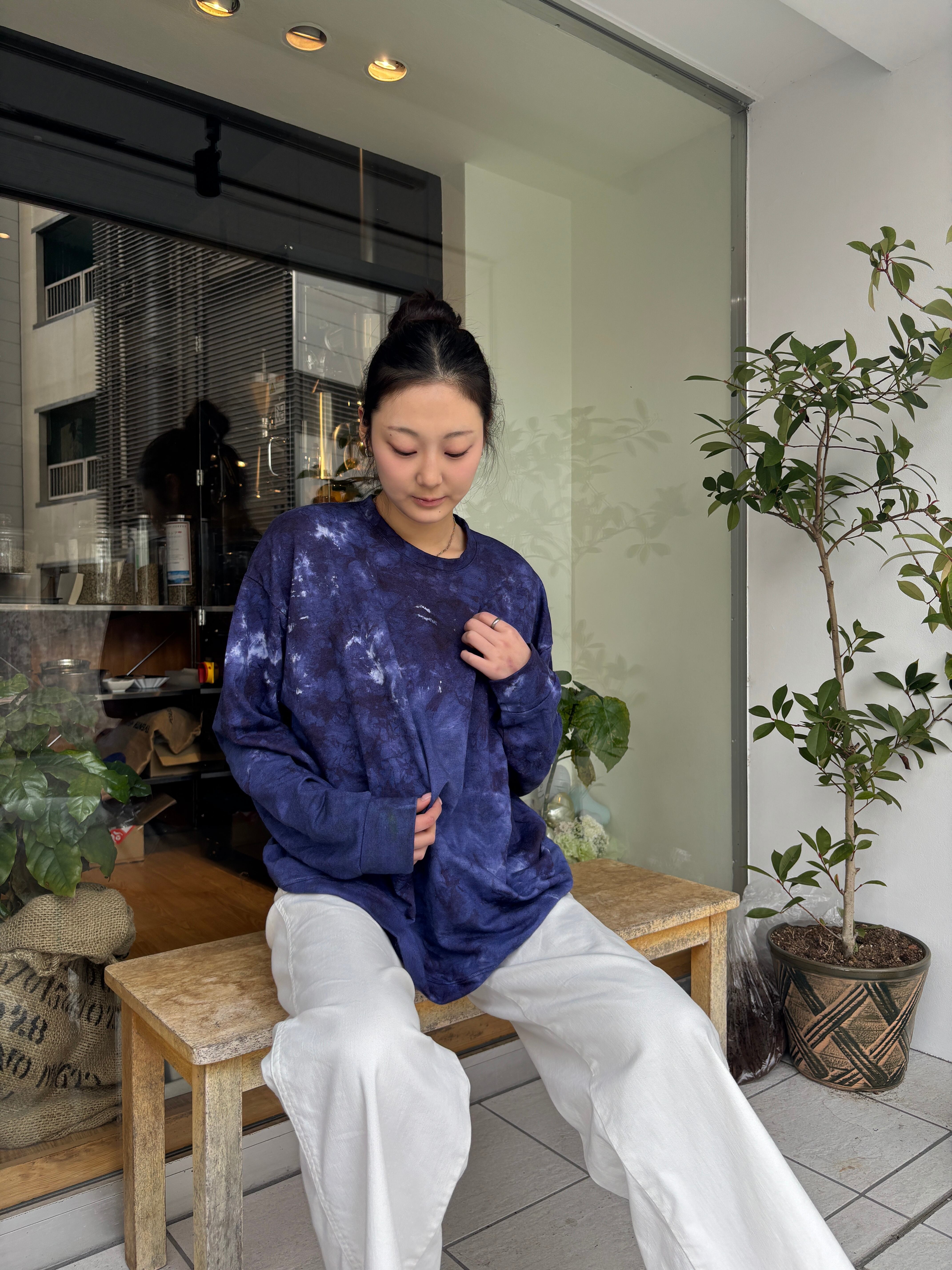 一点一点手で染め上げたNigerian Adire (ナイジェリアンタイダイ)のロングスリーブシャツです。