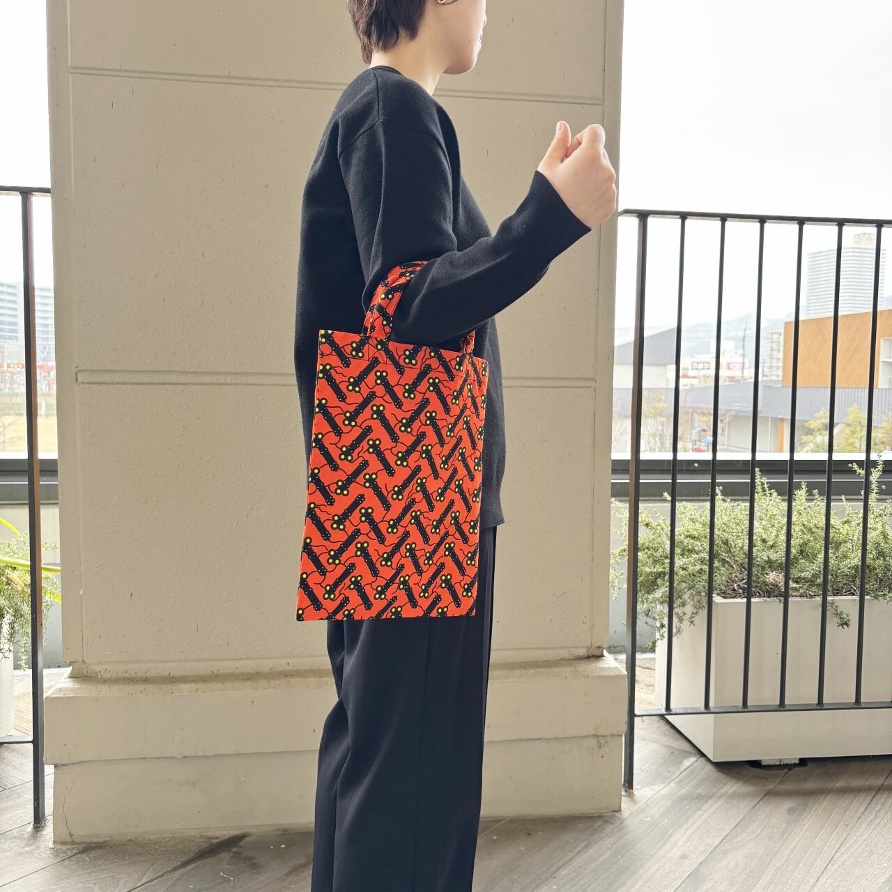 持ち手を少し太くし、持ちやすく手や腕に負担がないようにしました。折りたたんで帰りの荷物用に、セカンドバッグにも。